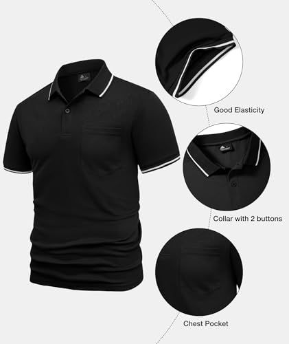 • Unique Design: This men's polo shirt features a classic two-button collar and chest pocket. Contrasting colors on the collar and cuffs add a stylish touch. Easily pairs with jackets, pants, and shoes for versatile styling