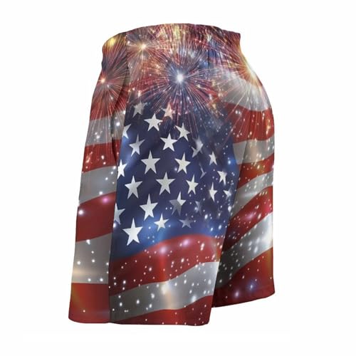 USA Flag Celebration Fireworks Men's Swim Trunks Quick Dry Board Shorts Hawaiian Beach Shorts With Pocket 6