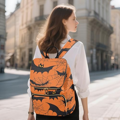 KLL Halloween Spider Web Bat Orange Backpack for Women Fashion Casual College Bookbag Daypack for Shopping Sports Travel 6