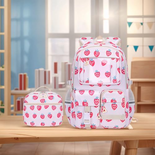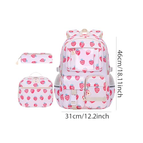 • 【Generous 20-35Capacity】 The cute strawberry backpack set includes a spacious main backpack, an insulated lunch bag, and a small pencil pouch. Plenty of room to carry essentials for day trips, picnics, or casual outings.