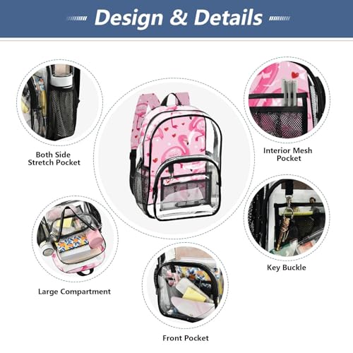 Clear Backpack Women Cute Cute Flamingos Pink Girls Backpack Kids Boys Approved Shoulder Bag 7