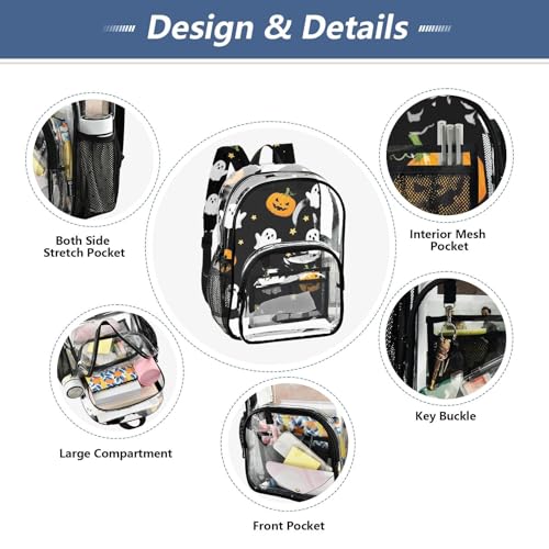 Travel Clear Bags for Women Boys Backpacks for Girls Approved Transparent Bag Cute White Ghosts Halloween Black 7