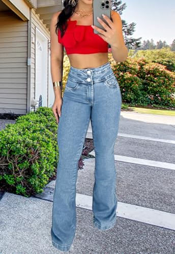 • Style:Fashion bell bottom jeans. Perfect for modern fashion with a basic blouse, shirt,tank top, crop top, jacket, pullover sweater, sweatshirt, outwear coat and heels.