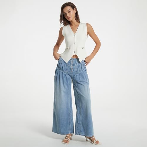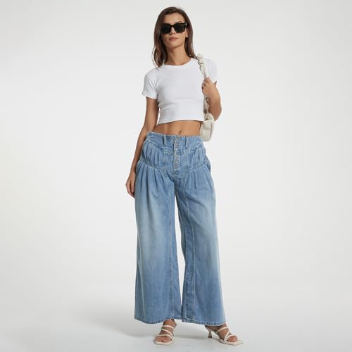 • Unique Features:This baggy denim pants features with mid-rise, billowy wide-leg, exposed button fly, pull-on design, cropped inseam design will make you stand out from the crowd