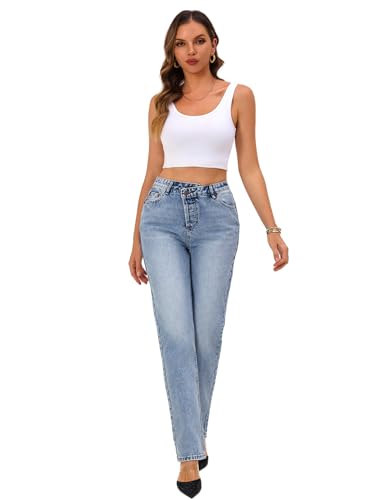 • CROSSOVER WAISTBAND DESIGN: These high waisted jeans feature a stylish crossover waistband that adds a unique twist. Perfect for those looking to stand out in straight leg jeans, offering a modern take on classic 90s jeans women love.