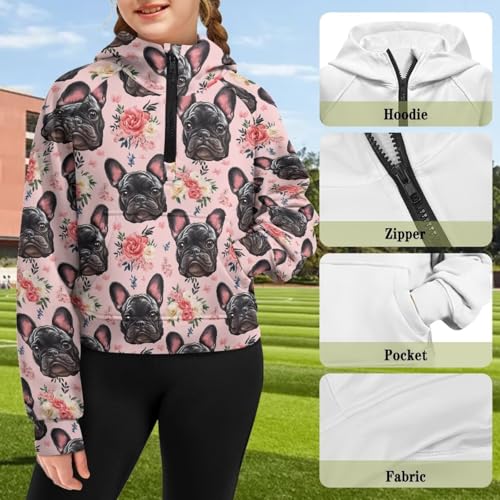 Girls Hoodies Size 5-14Y Hooded Hoodies with Pocket Long Sleeve Half Zip Up Hooded Sweatshirts 6