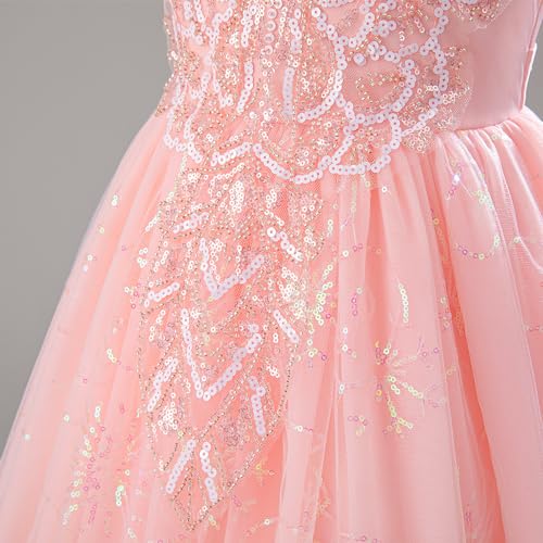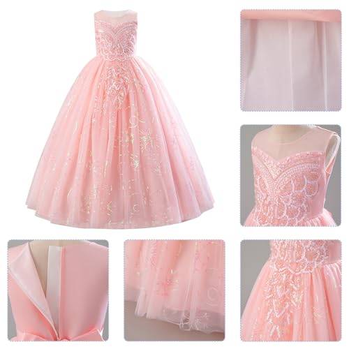 • Flower Girls Long Sequin Bowknot Wedding Party Dress: Little big girls embroidery sequin lace flower wedding bridesmaid pageant formal party long maxi dress, sweet junior bridesmaid princess first communion birthday dance prom ball gown floor length flare a-line puffy tulle ball dresses, elegant and gorgeous summer sleeveless open V-backless bowknot dresses for 3-12 year-old baby kids toddler teen girl.