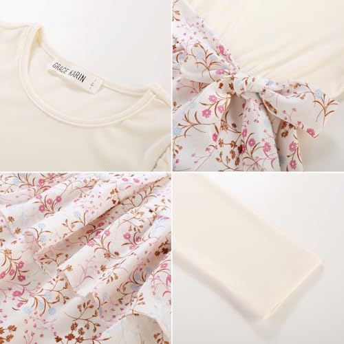 GRACE KARIN Girls Fall Long Sleeve Dresses Girl Floral Midi Dress Kids Casual Holiday Dresses with Belt Size 6-13 6