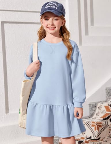 Arshiner Girls Dresses Long Sleeve Pullover Tops Drop Shoulder Sweatshirt Casual Dress with Pockets 6