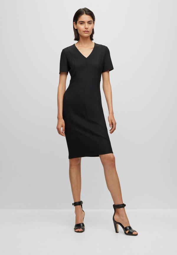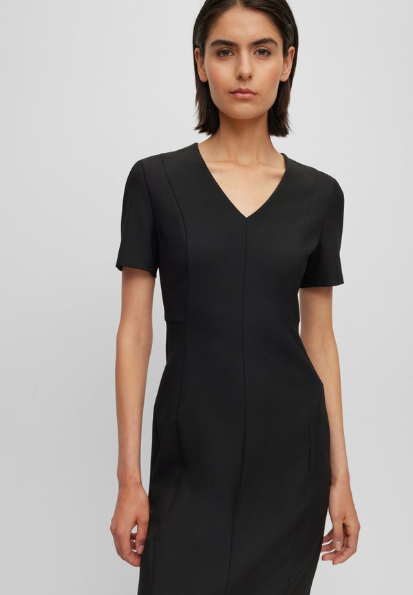 V-NECK BUSINESS DRESS WITH SHORT SLEEVES AND FULL LENGTH ZIPPER AT THE BACK - Day dress 1