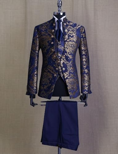 Men's 3-Piece Stand Collar Suit Jacquard Jacket Vest with Pants Tuxedos Formal Party Prom 3