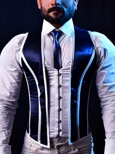 • 🖤 PREMIUM STEEL BONED DESIGN – Features strong steel boning 🧷 for firm compression and durable back support. Ideal for cosplay, steampunk, gothic, or formal styling with a modern masculine edge. 🕶️