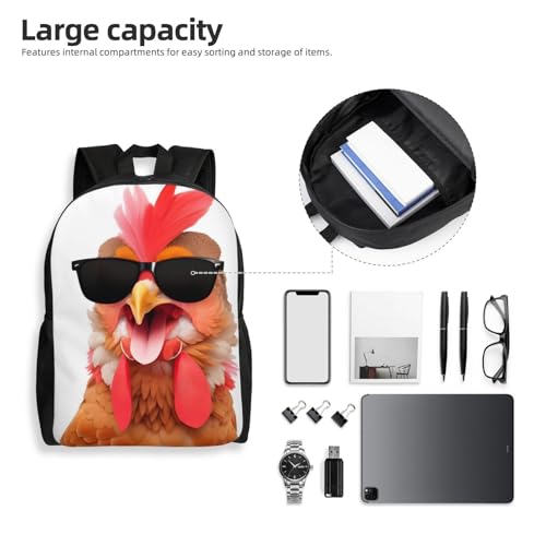 Casual Daypack Rucksack Backpack for Men and Women, Perfect for Gym, Outdoors, Running (Chicken Sunglasses) 6