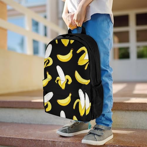Supdreamc Shoulder Book Bags Anti-Theft Multipurpose Big Capacity Bookbag - Yellow Banana Fruit Funny Black Pattern Travel Hiking Backpack With Smooth Zippers 3