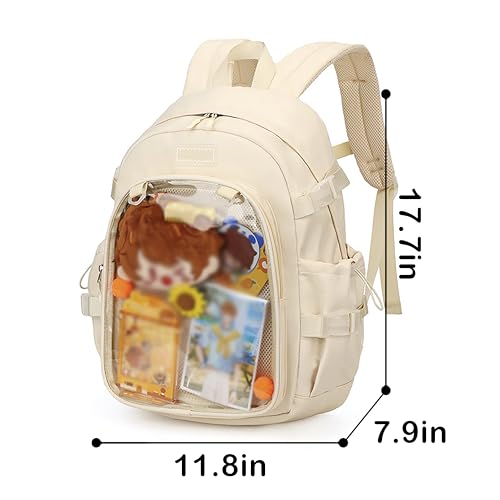 ZJYJING Ita Backpack with Pin Display Insert School Backpack for Girls Cute Ita Bag for Anime Badge Display (Off White) 1