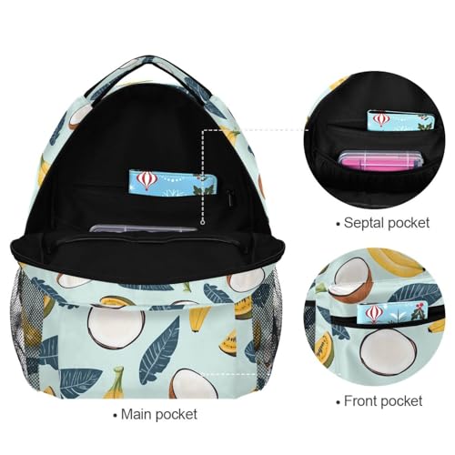 Banana Coconut Fruit Backpack for School Boys Girls Adults Kids Bookbag Laptop Bag 18L 1
