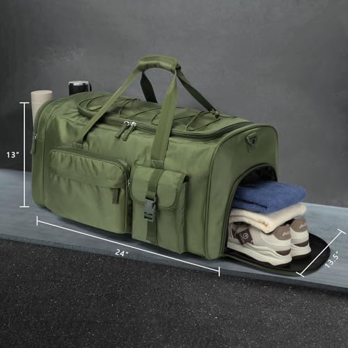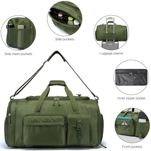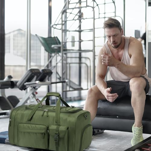 Extra Large Gym Bag Backpack with Shoes Compartment 70L Heavy Duty Sports Duffle for Men & Women Workout Duffel Bag Weekender Overnight Backpack for Travel Camping, Green 5