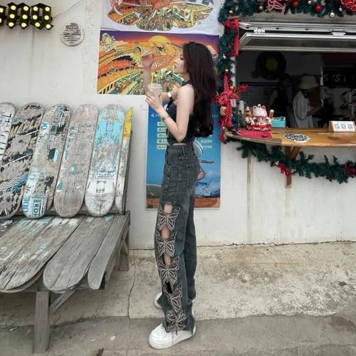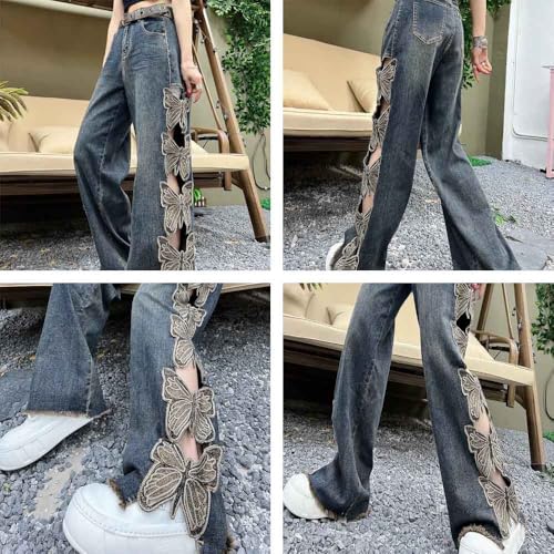 • BUTTERFLY HOLLOW-OUT DETAIL: The butterfly hollow-out detail on these jeans adds a unique touch to your outfit.