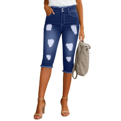 HOT ! Capri Jeans for Women Stretch Ripped Low Rise Jeans Y2k Curvy Sexy Straight Leg Distressed Skinny Jean Jeggings