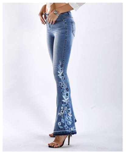 HOT ! Andongnywell Womens Floral Embroidered Bell Bottom Jeans Chic High-Rise Printed Flare Jeans Long Denim Pants