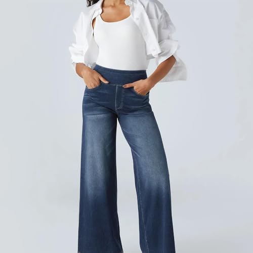 More information about Grevela Pull Up Jeans, Grevela Stretch Jeans, High Waisted Multiple Pockets Wide Leg Washed Stretchy Knit Casual Jean