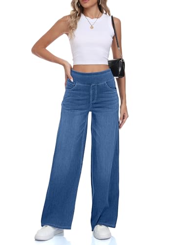 • Soft Elastic High Waist: These wide leg jeans feature a soft, stretchy high-rise elastic waist that gently hugs your midsection, offering light tummy control. The breathable, flexible fabric moves with you, ensuring a gap-free, comfortable fit perfect for long days at work, travel, or on your feet.