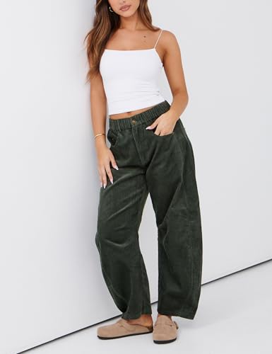 • Features: These corduroy pants women feature a comfy functional elastic waist, button closure, 4-pocket style, wide barrel leg, seam detail throughout, belt loops at waistband