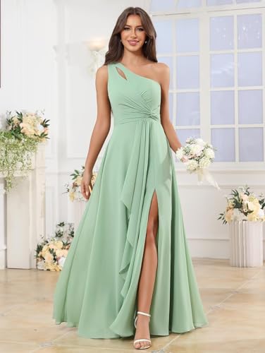 More information about Chiffon One Shoulder Bridesmaid Dresses with Slit Ruffles Wedding Long Formal Evening Dress for Women