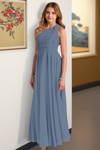 More information about One Shoulder Junior Bridesmaid Dress Ruched Flower Girl Dresses for Wedding Pleated Formal Dress for Girls