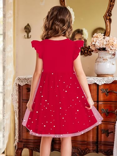 • Style and design: Patriatic dress printed including USA letters love design american flag red white and blue ,the dress features a round neckline and flutter sleeves. Its unique and fashionable design will make you the most eye-catching princess wherever you go.