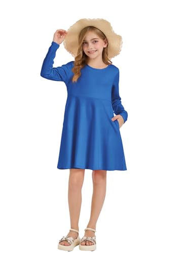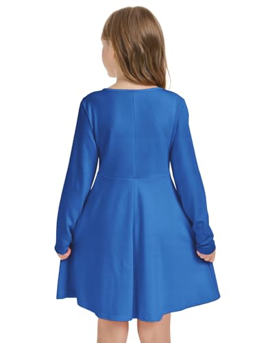 Girls Long Sleeve Skater Dress Kids Fall Crewneck Holiday Party Dresses with Pockets 6