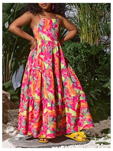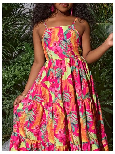 Girl's Cute Floral Cami Dress Tropics Hawaiian Boho Flowy Long Maxi Dresses Bow Back A Line Beach Summer Sundress 6