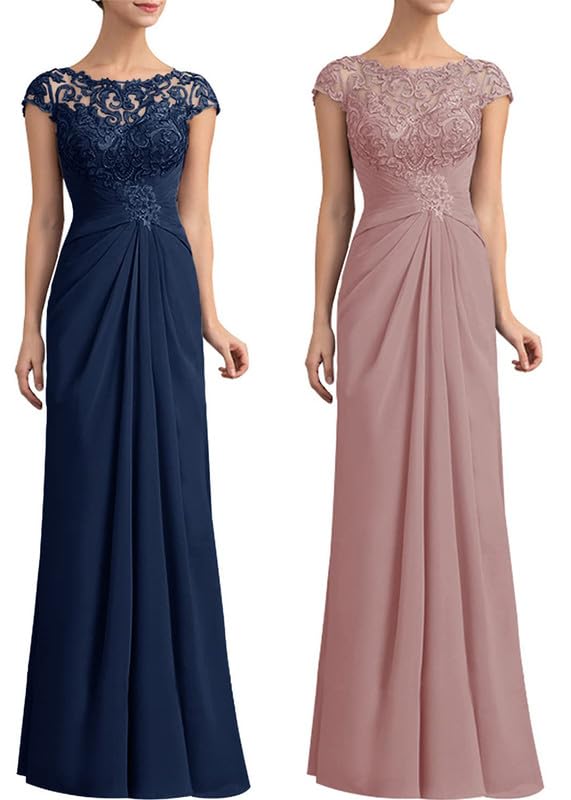 More information about Mother of The Bride Dress Cap Sleeve Long Chiffon Lace Appliques Evening Formal Dress Scoop Neck Pleated Evening Gown