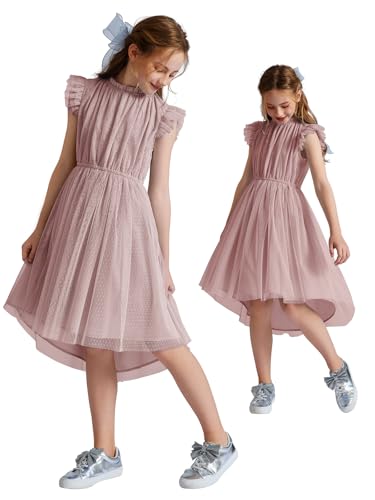 Quedoris Girls Tulle Dress Elastic Neck and Waist Three Layers Ruffle Sleeve Cocktail High Low Party Casual Dress 5