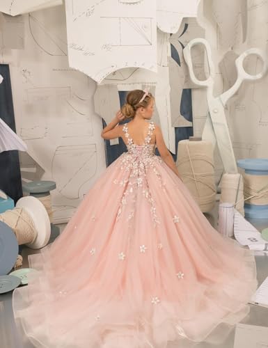 Flower Girl Dress for Wedding Lace Applique First Communion Dress Puffy Tulle Pageant Dresses for Girls 5
