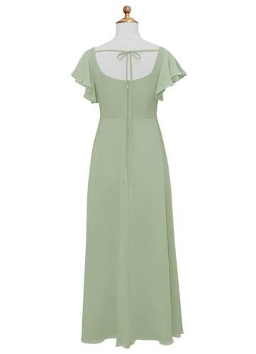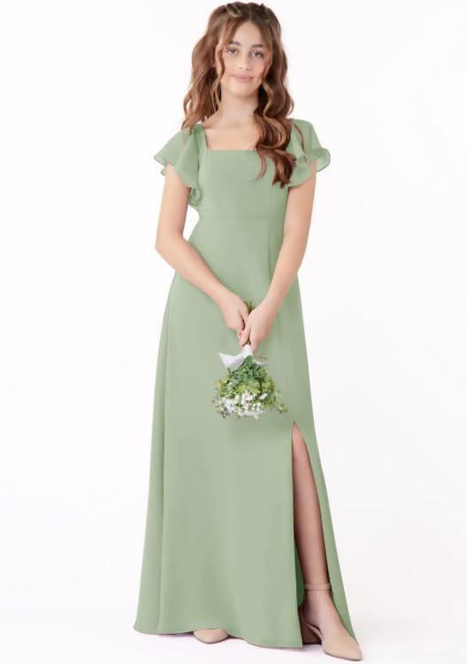 GATMAHE Flutter Sleeves Ruched Chiffon Junior Bridesmaid Dresses Square Neck A Line Flower Girl Dress with Slit 6