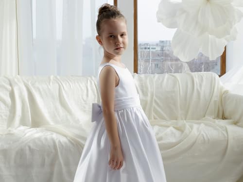 Satin Flower Girl Dress for Wedding Bow-Knot V-Back Dresses Crew Neck First Communion Princess Long Ball Gowns 6