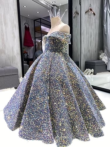 More information about Sequin Flower Girl Dresses for Wedding Off Shoulder Sparkly Pageant Dress for Girls Ball Gown Kids Dress