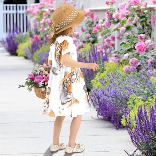 Ollabaky Little Girls Dress Short Sleeve Toddler Summer Sundress A-Line Casual Play Dress for Kids 6