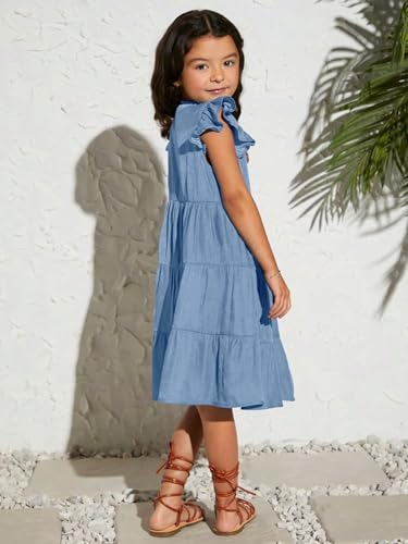 More information about OYOANGLE Girl's Button Front V Neck Tiered Dress Ruffle Cap Sleeve Flowy Knee Length Dresses