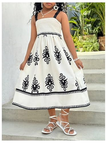 More information about Floerns Girl's Summer Boho Tie Shoulder Square Neck Dress Shirred A Line Flared Long Dress Beach Sundress
