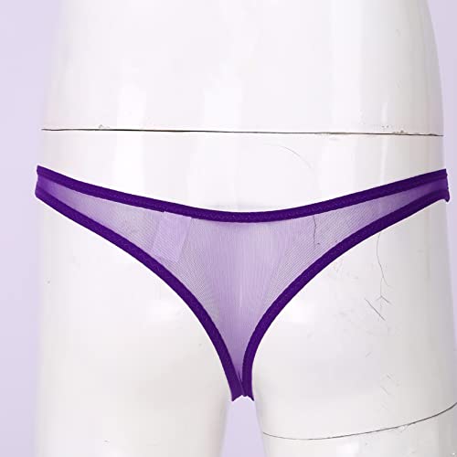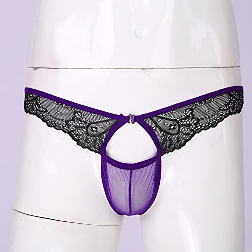 • Mens Sheer Lace Patchwork G-string Open Front See-through Mesh Thongs Briefs