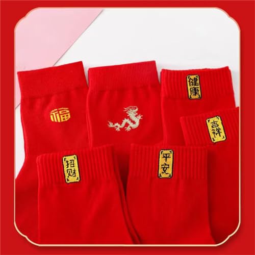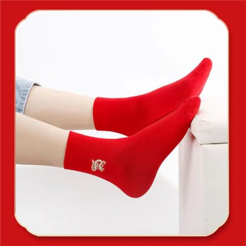 5 Pairs Red Chinese Socks for Men, Red Socks for Woman Chinese New Year Dragon, Wedding Socks for Bride and Groom 5