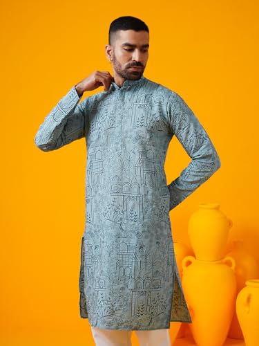 • Knee-length kurta pairs with a 100% cotton pyjama for a classic look.
