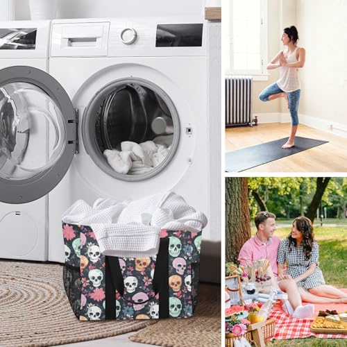 Bolaz Travel Tote Bag,Gym Bag for Men,Waterproof Beach Bag for Women Foldable Reusable-Colorful Skull Flowers5 7