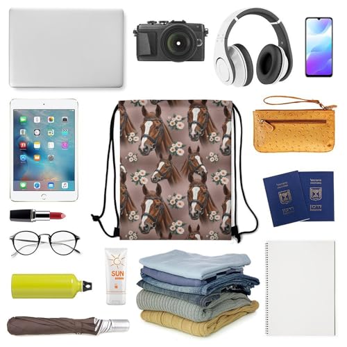 Novelty Cute Two Horses Draw String Back Bag, Sturdy Large Capacity Gym Bag for Shoes, Towels, Adults Portable Drawstring Bag Backpack for Outdoors 5