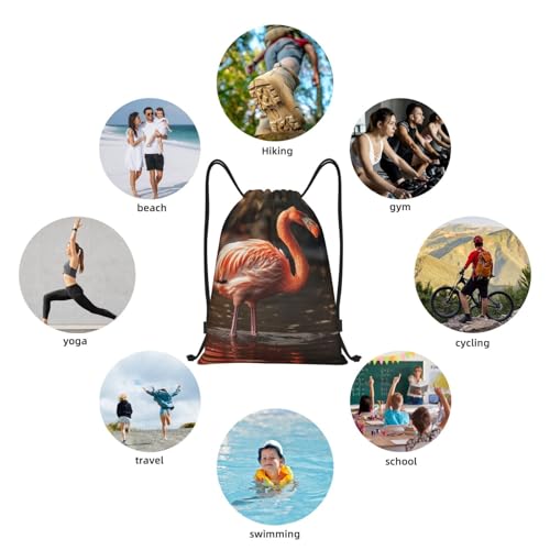• Excellent Material: Flamingo Is Drinking Water Drawstring backpack for sports measuring 19.6 x 16.5 inches, allowing you to carry various items in an organized manner to meet your needs for different occasions. Storage bags for sports is made quality 600d encryted water-resistant polyester with sturdy lining