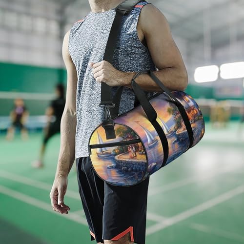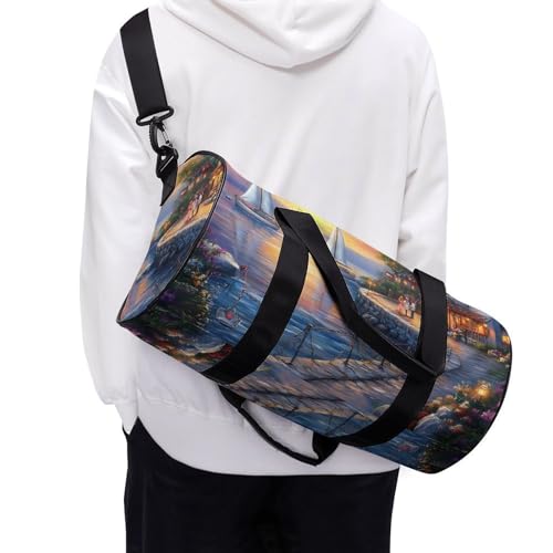 HOT ! The Mediterranean Harbour Sports Gym Bag Travel Duffel Workout Bag with Adjustable Strap