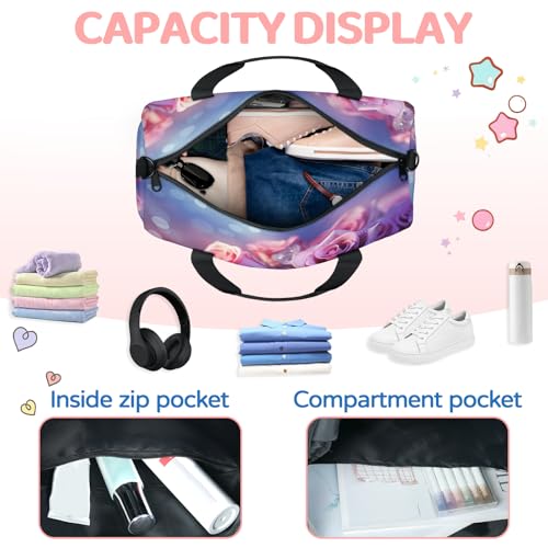• SPACIOUS SPACE: This sports gym bag measures 17.91x8.07x9.65 inches, with large capacity, has an oversized main pocket and 2 pockets on the inside to store books, clothes, towels, shoes, personal items and toiletries. There is a divider and zip pocket on each side of the travel bag, suitable for cards, passports, phones, snacks and other small items.
