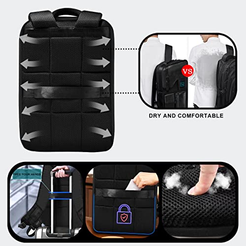 • Material and Features: Made of premium synthetic leather and polyester cloth that are waterproof and durable. The travel laptop backpack has a variable capacity for more flexible loading. It can easily transform between daily commute and business trip modes. The slim design is perfect for cycling to the office, while the expanded backpack with a large capacity is ideal for camping and day trips